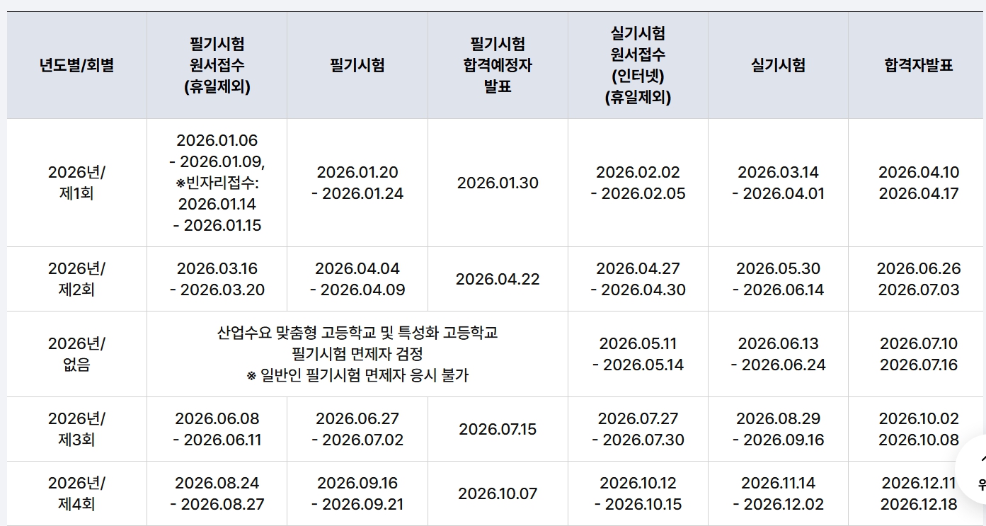 2026년 기능사 시험일정